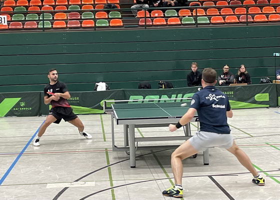 Sogar die Altmeister Popal und Fetzner spielten und machten ihre Aufgabe gut, in den Einzeln 1:1 und Sieg des gemeinsamen Doppels!