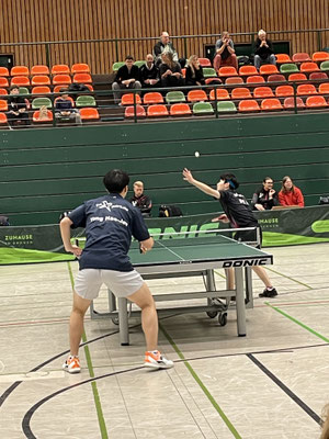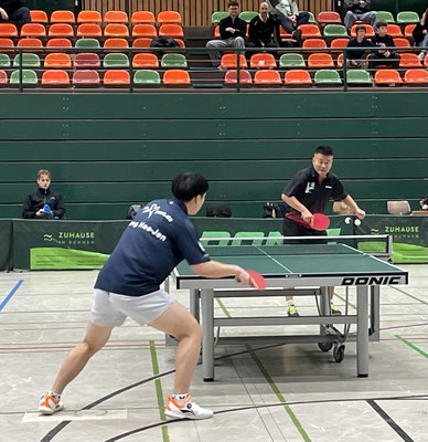 Beim zweiten Spiel in der 2. BL konnte der OTB in Bestbesetzung auflaufen! Nach den Doppeln stand es 1:1 und im oberen Paar gewann Li sein Spiel und Chen Weixing musste sich geschlagen geben, 2:2! Das untere Paar, Philipp Floritz und Nad Nemedi, konnten durch tolle Spiele auf 4:2 erhöhen..., dann kam leider kein Punkt des oberen Paarkreuzes, 4:4!